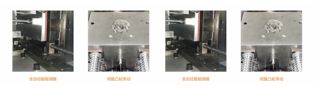 3. The helical gear mechanism drives the spindle action, which is stable, accurate, reliable, high output, long service life. The whole machine can realize the slow motion operation of play type, and the cam mechanism can obtain more stable movement. When the speed changes, it can also keep synchronous, and it is easier to observe the production process during debugging.